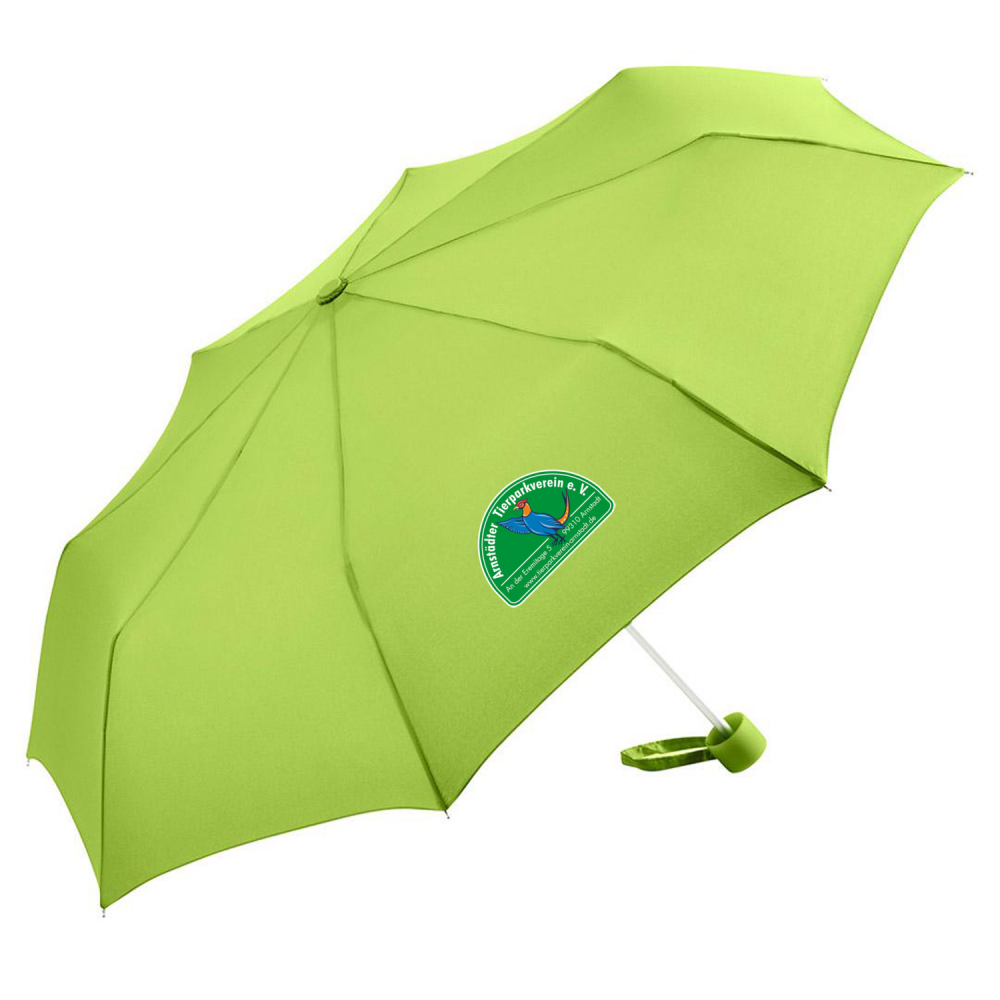 Auf schlechte Witterung immer gut vorbereitet: Mit dem praktischen Taschenschirm im trendigen Look. Mit seinem praktischen Griff lässt er sich gut und sicher halten. Der Schirm ist leicht aufzuspannen und lässt sich genauso unkompliziert zusammenklappen. Geöffnet besitzt er eine schöne Größe und zeigt den Vereinsprint. Die Gestellkonstruktion zeigt sich robust. In geschlossenem Zustand wird er fixiert und passt in jede Tasche. Hübsch und zweckmäßig: der praktische öffnet & schließt per Knopfdruck (am Griff). Ein absolutes Must-Have.